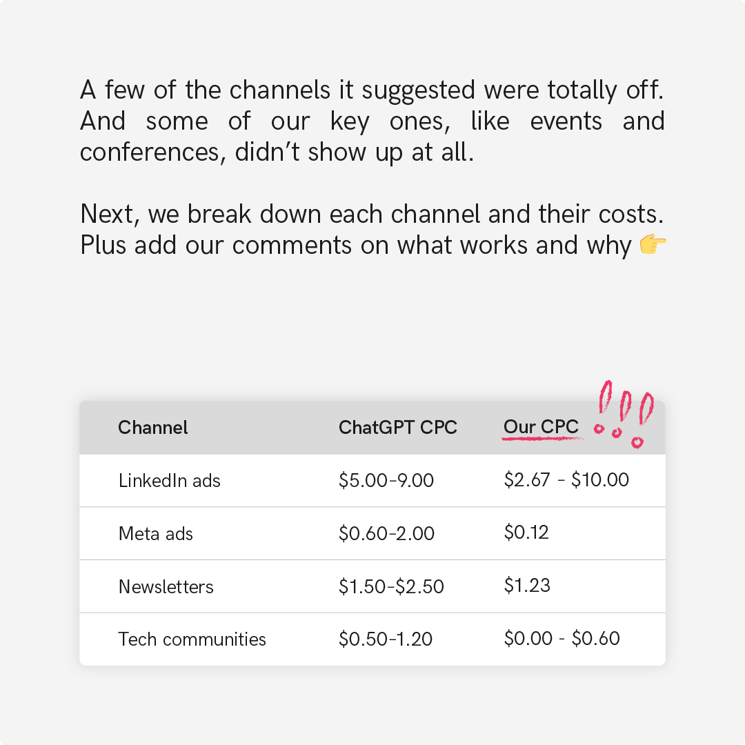 - The channels it recommends mostly make sense, but executing them is way harder than it looks